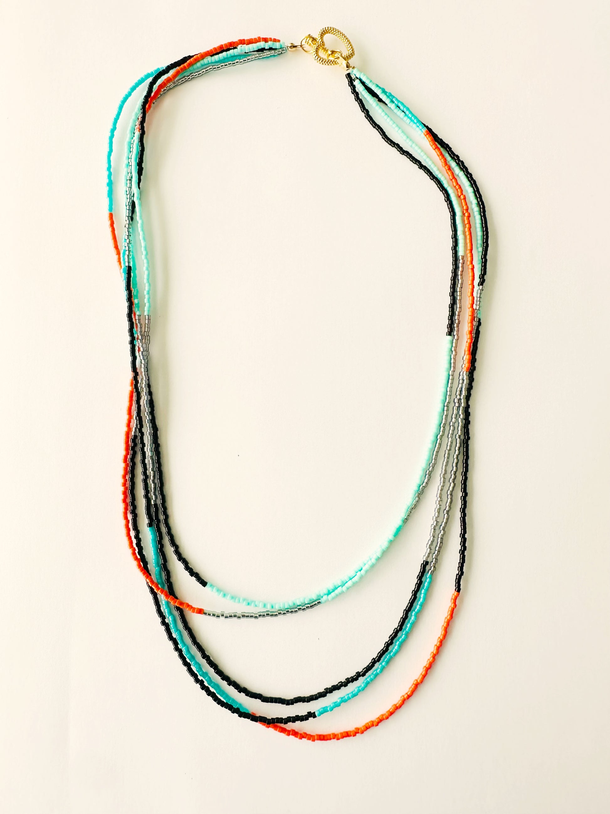 Combina ondas en colores de miyuki en tonos vibrantes que caen en cascada en un diseño ligero y moderno. Sus líneas fluidas evocan frescura, libertad y movimiento, convirtiéndolo en el accesorio ideal para realizar tu estilo con un toque boho chic lleno de vitalidad.
