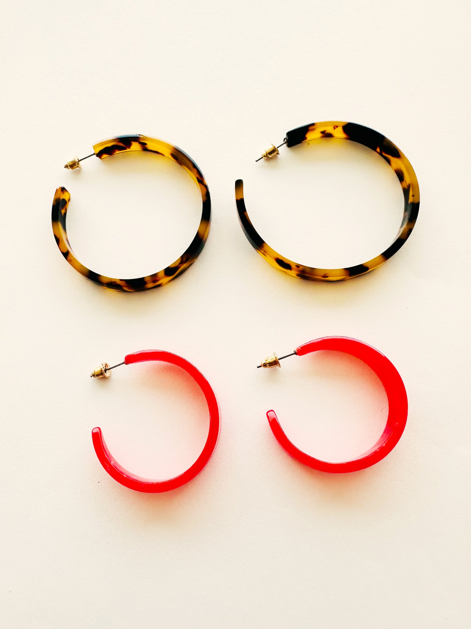 incluye un par en carey un clásico atemporal que aporta elegancia y equilibrio, y un par en tono rojo vibrante ideal para dar vida, energía y personalidad a tus outfits.